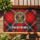 Crachá da crista Clan Marjoribanks cercado por uma correia e fivela sobre fundo tartano. Custom Text.