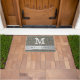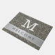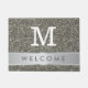 Um tapete de porta de boas-vindas com brilho de prata elegante para convidar seus convidados em estilo. A falsa porta de olhar reluzente tem uma banda prateada com as palavras de boas-vindas, que você pode personalizar, para torná-la única e especial. Adicione sua carta inicial de monograma.