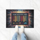 Uma porta com um design de código de barras engraçado que diz Digitalize seus pés aqui. O código de barras é feito de linhas coloridas e inclui pegadas na linha inferior. Seja bem-vindo aos seus entes queridos com este estilo - Amuse Barcode Design - Scan Your Feet Before Enter Doormat. Para personalização adicional, basta clicar no botão "Personalizar" para acessar nossa ferramenta de design. Redimensionar, rotacionar, alterar cores, adicionar texto e muito mais para torná-lo exclusivamente seu!