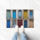 Conjunto de portas frontais coloridas em La Valeta, Malta. Colagem de portas frontais coloridas em Malta.