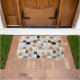 Cães de Collie Rough Cute sentam-se e ficam de pé e rollover com casacos sápidos, tricolores, unidos e brancos com ossos de cão espalhados e padrões de pegadas.