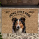 Apresentando nossa linda porta coir apresentando uma adorável collie, pronta para receber você e todos seus amigos peludos com patas abertas! Feito com amor e atenção aos detalhes, esta porta não é apenas uma adição funcional à sua porta, mas também uma peça de declaração caprichosa que trará um sorriso à sua face toda vez que você entrar em sua casa. Este tapete de boas-vindas pode ser personalizado com o nome do seu cão, o slogan também pode ser mudado ou você pode usar uma fotografia do seu próprio cão (certifique-se de que é transparente). O texto diz: Jacko vive aqui... Todos são bem-vindos. Faz um presente maravilhoso para uma festa de inauguração, feriados, amantes de cachorros e a maioria das vezes.