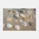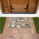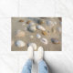 Este tapete de porta tem conchas de mar nele.