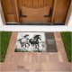 Cavalos rodando brancos e negros russos em uma cor d'água monotônica. "Cavalo sempre é bem-vindo!" em um roteiro popular. Personalize facilmente com seu nome familiar.