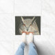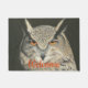 Um lápis colorido e desenho de tinta de uma Coruja Excelente Coroa Coroa Coroa com olhos laranja perfurantes adornam este tapete da porta. Personalize adicionando ou alterando o texto para se adequar a si próprio.