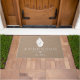 Silhueta branca do seashell do estilo litoral rústico no centro. O fundo tem um impressão de serapilheira do falso e um texto personalizado do nome de família. Este doormat é elegante, rústico, e bonito e faria uma grande impressão em seus convidados da casa porque são dados boas-vindas a sua casa!