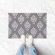 Design decorativo do teste padrão da superfície do damasco no detalhe de creme em um fundo cinzento.