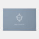 An elegant dusty blue and white design with the monogram initial in a vintage crest. The crest and the initial are white, the background is dusty blue. Under the crest, there is the name in white caps.