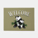 A mamãe panda senta-se comendo bambu enquanto o bebê faz como o bebê panda vê