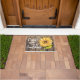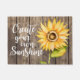 Doormat floral bonito que caracteriza o girassol da aguarela com citações inspiradas. As citações inspiradores dizem que "criar sua própria luz do sol." O fundo é textura de madeira. Design rústico e do país.