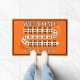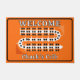 This orange, black and white cribbage board graphic entryway door welcome mat is easy to personalize with the game night host's name, perfect for cribbage players who love this classic card game. Awesome cribbage themed gift for yourself, your cribbage partner, card shark mom, dad, uncle, aunt, brother, sister, neighbor, grandpa, grandma, husband, wife, friend, or work colleague.