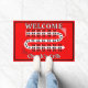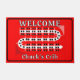 This red, black and white cribbage board graphic entryway door welcome mat is easy to personalize with the game night host's name, perfect for cribbage players who love this classic card game. Awesome cribbage themed gift for yourself, your cribbage partner, card shark mom, dad, uncle, aunt, brother, sister, neighbor, grandpa, grandma, husband, wife, friend, or work colleague.