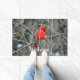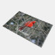 O cardeal do norte vermelho brilhante é uma primeira impressão vívida na esteira de porta resistente.