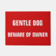 "Gentil Dog, Cuidado com o Proprietário" Engraçado, hilário, advertência humorística, respaldo de borracha não escorregadia, coberto ao ar livre / interior / tapete de porta de entrada. Um tapete de porta divertida para donos de cães, para a entrada da sua propriedade - fazenda. Adiciona humor à decoração da sua casa.