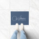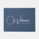 Minimalist Chic Custom Navy Blue Welcome Elegant Calligraphy Doormat