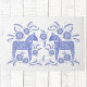 Um tradicional design de Dala Horse sueco em azul-e-branco-rosado.