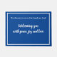 O tapete da porta é mostrado em azul e tem borda branca e texto. O texto diz "nós escolhemos servir o Senhor nosso DEUS" e "Dando-lhe as boas vindas com paz, alegria e amor". Personalize este tapete ou comprar como está.
