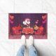 Uma ilustração de uma fofa ave cardeal de norte de casal de namorando em uma data de janto para dia de os namorados rodeada de balões de coração vermelho. Esta adorável design de desenho kawaii é uma ideia de presente para amantes da cena romântica.