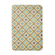 Abstract geometric pattern with diamond shapes in pastel colors. Each contains a star-like motif in teal, orange, or brown. Retro and symmetrical design.