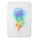 Água-viva grande, iridescente, desenhada artisticamente, brilhante, com longos tentáculos em branco, pintada sobre fundo de aquarela multicolorido. Água-viva arco-íris.
