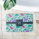 Personalize este tapete de banho temido para dinossauros fofinhos com o monograma inicial de solteiro do seu filho em letras brancas para um toque personalizado legal! Criado especialmente para as meninas que amam dino, este design colorido apresenta ilustrações cor-de-rosa, roxo e mint verdes dinossauros em um fundo aqua vibrante.