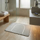 Elevate your daily routine with this architectural stone grey bath mat, meticulously designed to bring a Japandi-inspired "Quiet Luxury" to your master suite. The design features a singular, refined off-white arch that creates a sense of spatial depth and visual tranquility. This minimalist layout is specifically curated for luxury apartments and modern homes where clean lines and neutral palettes are essential for a sophisticated spa-like experience.