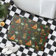 Raposa vermelha, coelho, coruja, marta-luna, pinheira com folhas de outono, abóboras, flores e bolotas num pano de fundo verde profundo