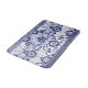 Este design de tapete de banho apresenta um padrão tradicional de azulejo mexicano, no estilo talavera, azul e branco.