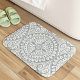 Um tapete de banho com um belo azulejo marroquino inspirou um padrão em azul claro e creme. Faz uma bela adição ao seu banheiro ou ideia de presente para alguém que gosta de designs inspirados no azulejo marroquino.