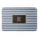 Este tapete de banho adiciona cor e personalidade ao seu banheiro, com suas listras azuis e brancas e sua inicial. Peça hoje!