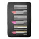 Um padrão divertido de batom colorido em tubos de cromo. Muito feminino e moderno. Parece uma linha do horizonte da cidade de batom.