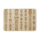 Este é um tapete de banho inspirado na natureza com um motivo rústico com colunas botânicas verticais. A design é perfeita para interiores confortáveis e curados. O fundo é bege e os motivos são marrons. São um padrão repetitivo de colunas verticais de motivos estilizados de plantas como folhas, flores, círculos e semicírculos. Ele é projetado para compradores que amam a decoração da natureza com uma reviravolta rústica. Ideal para interiores do tipo Terthy Boho, Escandinava ou cottage. Perfeito para aqueles que buscam elegância subestimada em têxteis de banheiro.