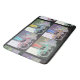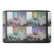 O trabalho de arte colorido neste grande tapete de banho foi feito a partir de uma fotografia original de ZoeSPEAK de uma bicicleta estacionada fora de um compro em Key West, na Flórida. Vestuário do compro pendura na porta aberta atrás da bicicleta. A foto é feita em quatro esquemas de cor, bicicleta vermelha, bicicleta azul, bicicleta verde e amarela, com cores de roupa correspondentes. Os fundos estão em tonalidades mudas de massa e cinza-azeitona, e o fundo geral é um preto marmoreado.