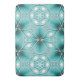 Um design caleidoscópico branco e turquesa impressionante, com padrões geométricos intrincados, linhas vivas e formas semelhantes a estrelas simétricas. Este trabalho de arte abstrato ousado e moderno combina tons legal de gelo com detalhes fractais dinâmicos, criando uma peça visualmente cativante perfeita para decoração doméstica, roupa ou acessórios.