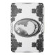 As cores principais no design são preto e branco. Os principais elementos do design são os cameos e rosas pretos.