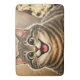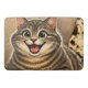 A bath mat featuring a caricature of a cat.