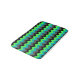 Um tapete de banho de pequeno porte com um design elegante padrão de cavaleiros multicoloridos em preto, cinza, verde e turquesa.