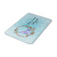 Um tapete de banho com uma ilustração gráfica composta por uma silhueta de lobo de aquarela púrpura, balançando na lua. Dentro de pé, desenho de uma coroa de madeira, cristais, penas e miçangas. Legal estilo boho. A citação da tipgrafia diz: Coração de uma Alma Guerreira de um Lobo com uma linhagem de divisores fofinhos no fundo com um coração de ventre no centro.