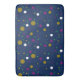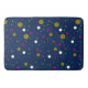 Um padrão de círculos de vários tamanhos em ouro, branco, roxo e verde está espalhado sobre um fundo azul escuro. Os círculos são espaçados uniformemente e variam de diâmetro.
