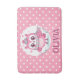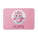 Coruja rosa fofinha personalizada vestindo capuz e cachecol no tapete de banho bolinhas