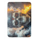 Libere o poder desta impressionante obra de arte, apresentando um crânio formidável com olhos brilhantes, pronto para a batalha contra as forças da perdição. Vestida com couro preto elegante e armada com uma arma de fogo, a figura exala intensidade e resiliência. Chamas ardentes, fumaça e cinzas giram ao fundo dramático, amplificando o sentido de ação e perigo. Perfeita para colecionadores que apreciam visuais ousados e dinâmicos e temas sombrios e atmosféricos, esta peça certamente fará uma declaração poderosa em qualquer espaço.
