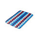 Um tapete de banho de pequeno porte com um design de padrão giro e colorido de cebolas vermelhas, brancas e azuis.