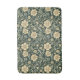 Dark green wallpaper pattern featuring repeating stylized yellow flowers interspersed with sage green leaves and swirling vines.