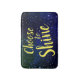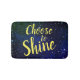 Um tapete de banho distante, com fundo estrelado, e as palavras "Escolher Brilhar" em um roteiro amarelo.