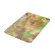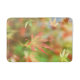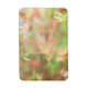 No cenário das folhas verdes de verão de um ácer japonês que fluía para vermelhos e amarelos do outono, uma folha de esqueleto de rosa e ouro desce lentamente para o chão.
