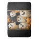 Desdecore seu banheiro feliz pelo Halloween com este design divertido com um fundo preto com fantasmas vestindo com chapéus e sorrindo de abóbora-o-lanternas. Dourados sotaques em cada lado do design.