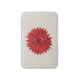 Flor vermelho-escura giro sobre fundo de listras beges. Modelo de tapete de banho personalizável