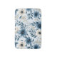 Num fundo azul claro, há um padrão adorável de azul escuro e flores beges com bagas de ouro.