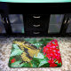 Uma foto aproximada de uma delicada borboleta amarela e preta descansando em uma flor vermelha brilhante. "Sonhe" com um dia quente e ensolarado sempre que usar esta impressionante e colorida fotografia de banho ou tapete de cozinha. Faz um ótimo presente para alguém especial!