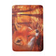 Raposa vermelha na floresta do outono. Árvores e luz solar morna.